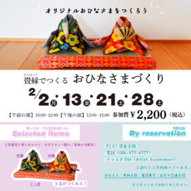 📢 FLAT児島本店 2月ワークショップ開催のお知らせ\畳縁でつくる おひなさまワークショップ/ 2月のワークショップは、畳縁を使ってつくるかわいらし…