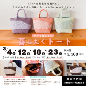\ ランで仕立てる|春じたくトート 👜🌿 / 3月のワークショップは、100%自然素材の畳縁「ラン」を贅沢に使用したトートバッグを制作します。 ななめ…