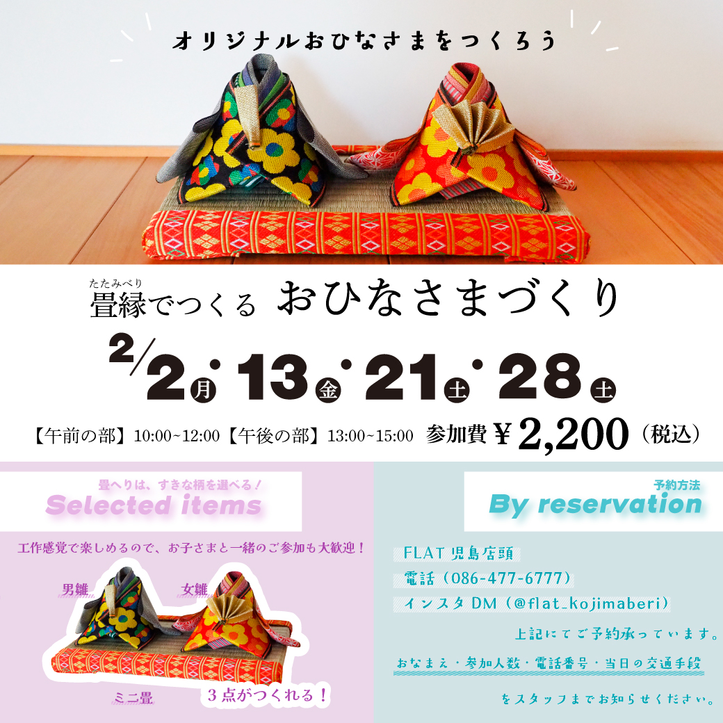 📢 FLAT児島本店 2月ワークショップ開催のお知らせ