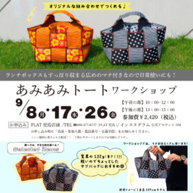 🍂 9月のワークショップ開催決定! 🍁いつもFLAT児島本店をご愛顧いただきありがとうございます! 9月のワークショップは、「あみあみトートバッグ」で…